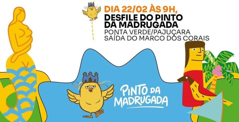 O bloco Pinto da Madrugada, patrimônio cultural e imaterial de Alagoas, segue em pleno frevo agora em 2025. A novidade este ano é o que o percurso do bloco Pinto da Madrugada terá sentido oposto ao dos anos anteriores. Agora em 2025, o desfile começa no Marco dos Corais, na Ponta Verde, e vai em direção à Pajuçara.