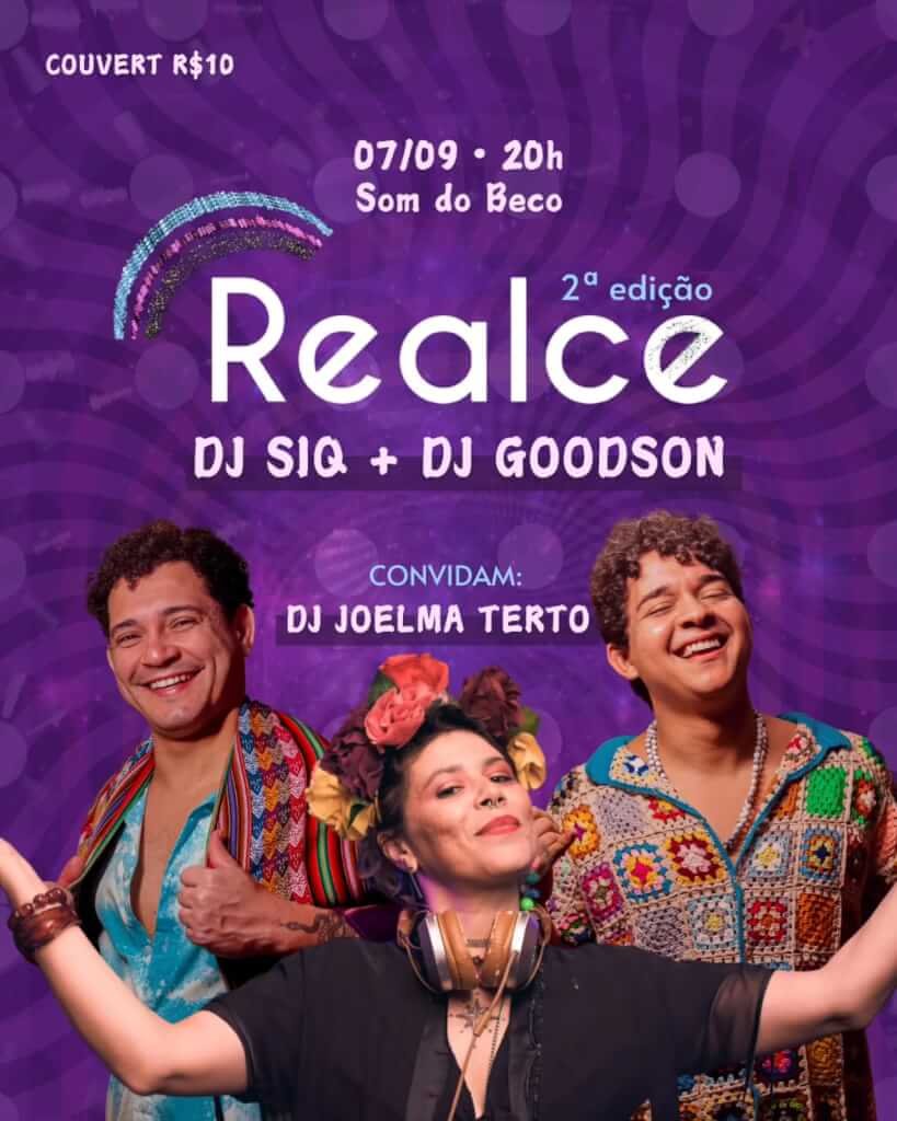 Misturando as canções que marcaram gerações com os hits atuais que fazem todo mundo cantar, a segunda edição da festa Realce promete colocar o público para dançar com o melhor da música brasileira. No sábado, dia 7, às 20h, no Som do Beco, em Jaraguá, os DJs Goodson e SiQ convidam a DJ Joelma Terto para o evento, que também contará com a intervenção artística de Allexandrëa Constantino.